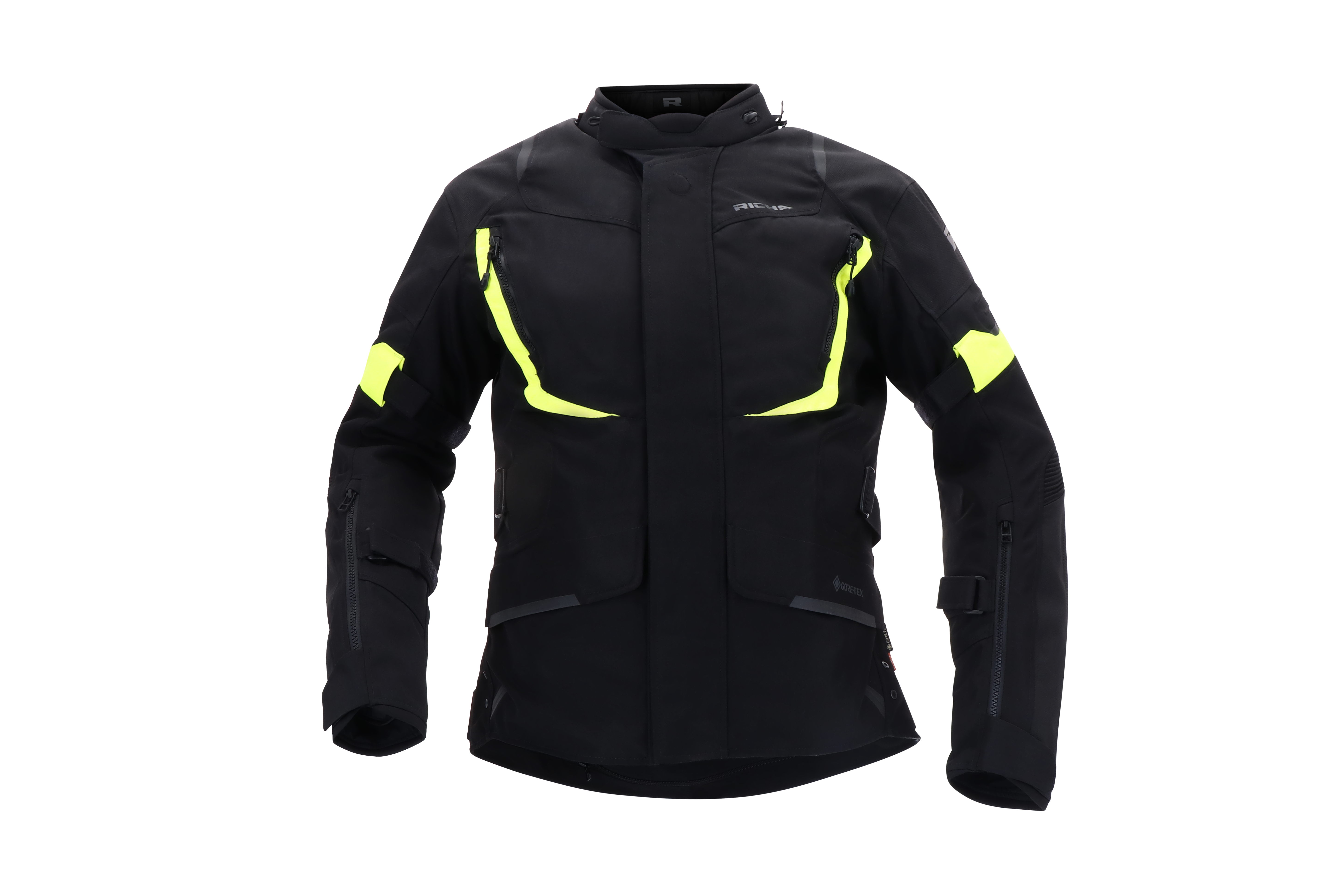 Adjustments can be made on the sleeves, waist and cuff width for a preferred fit along with zippers to accommodate different styles of gloves. To connect the jacket to any compatible Richa trousers, the Cyclone 2 Gore-Tex® Jacket has both a short and 360° zipper.