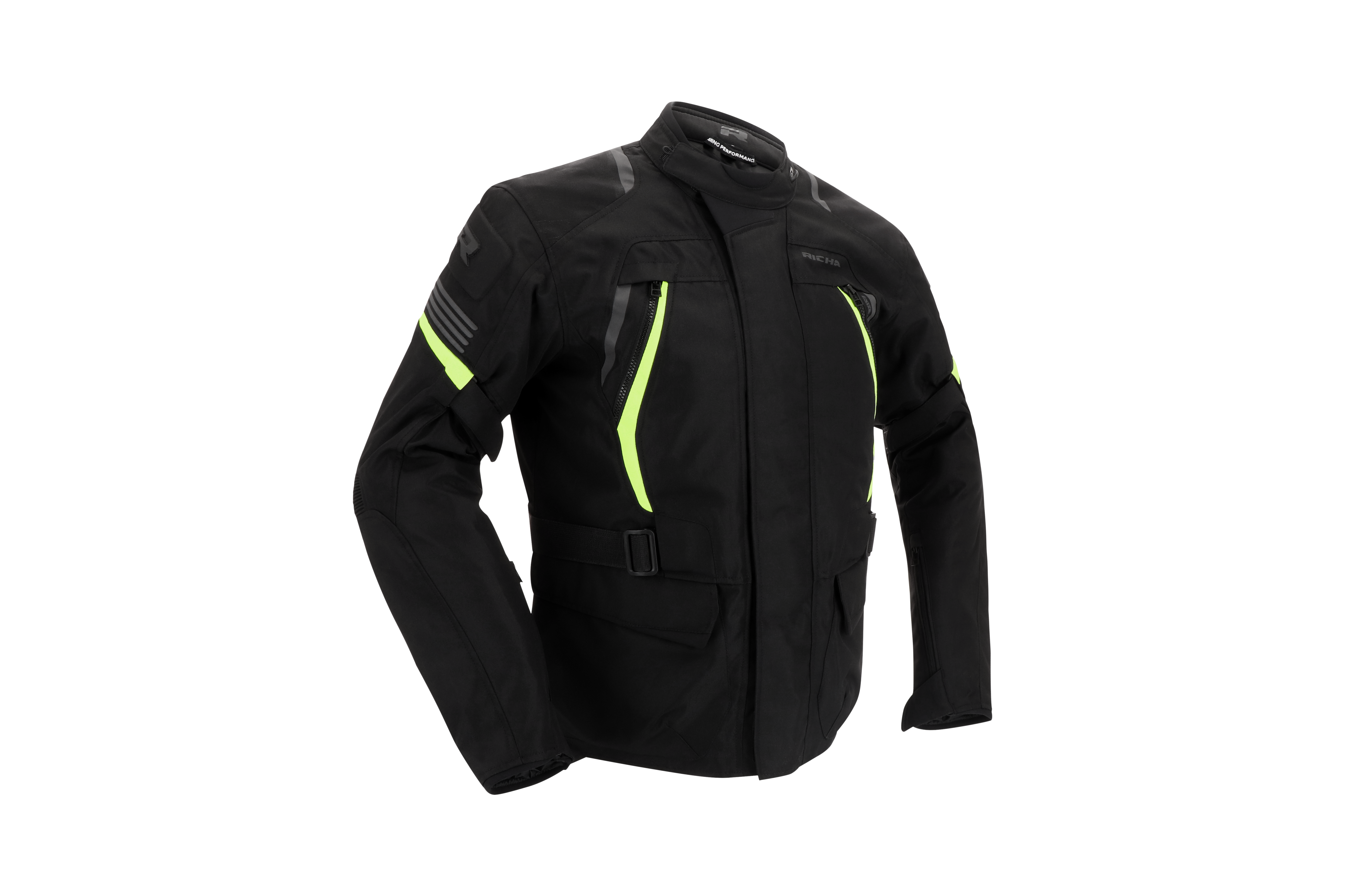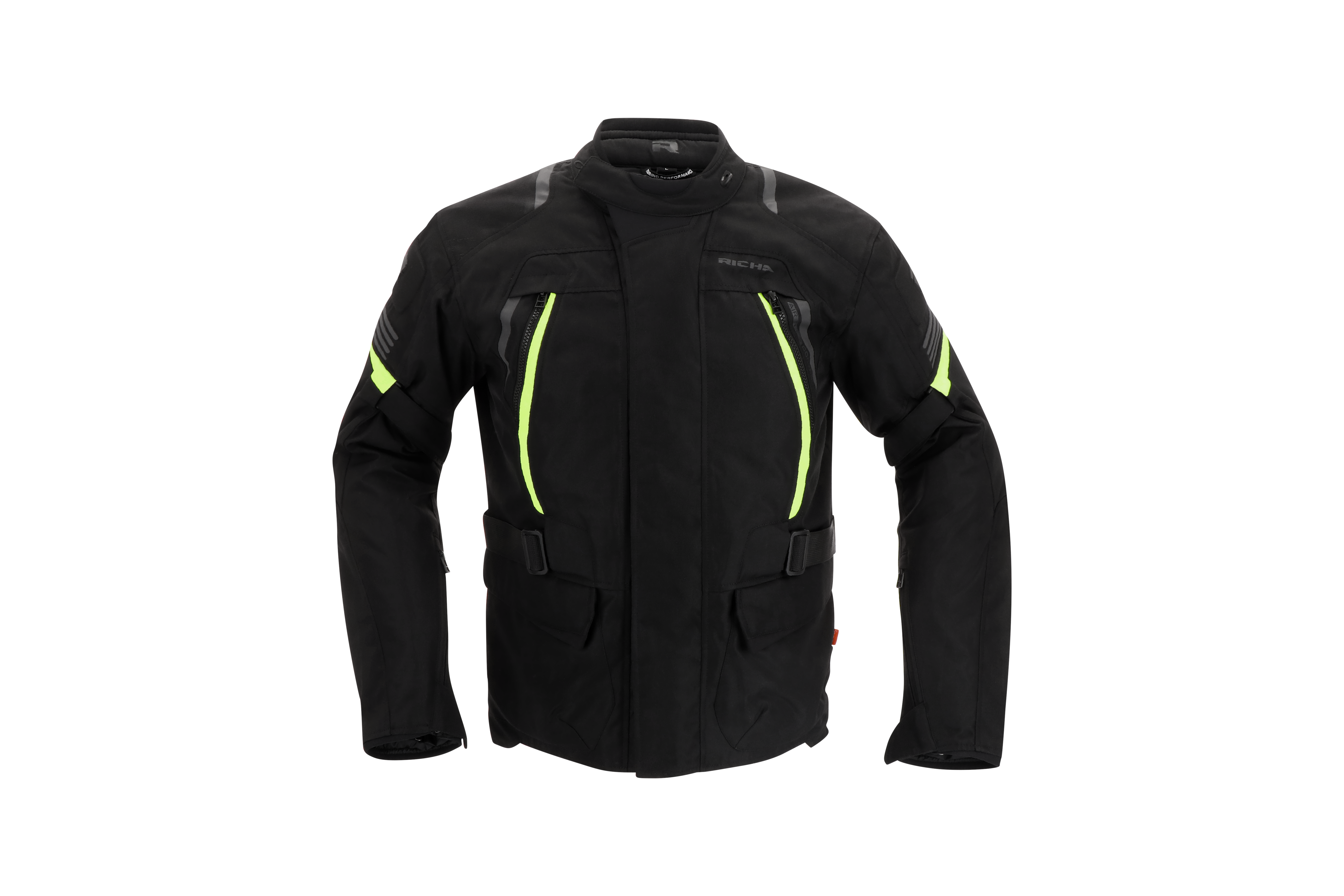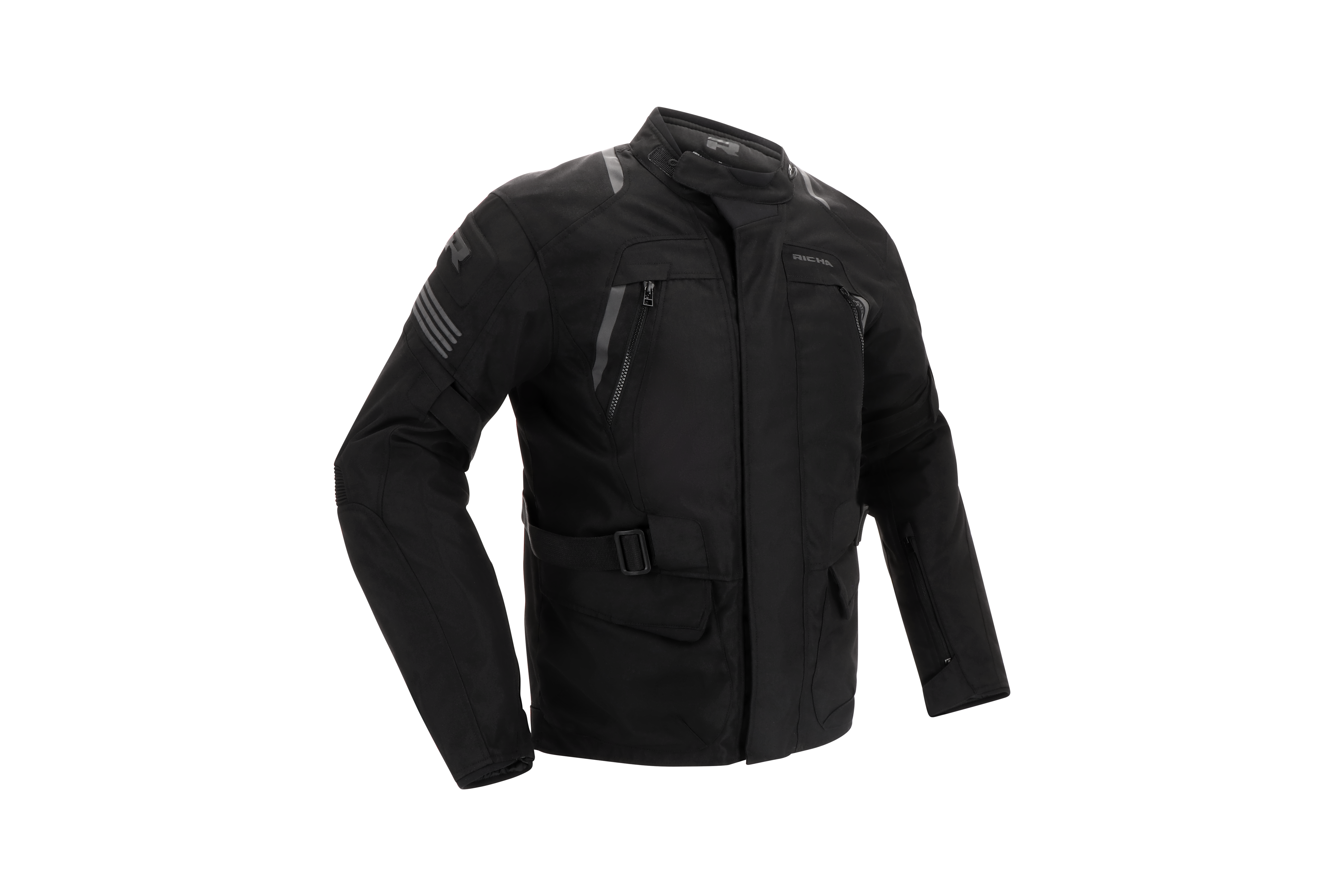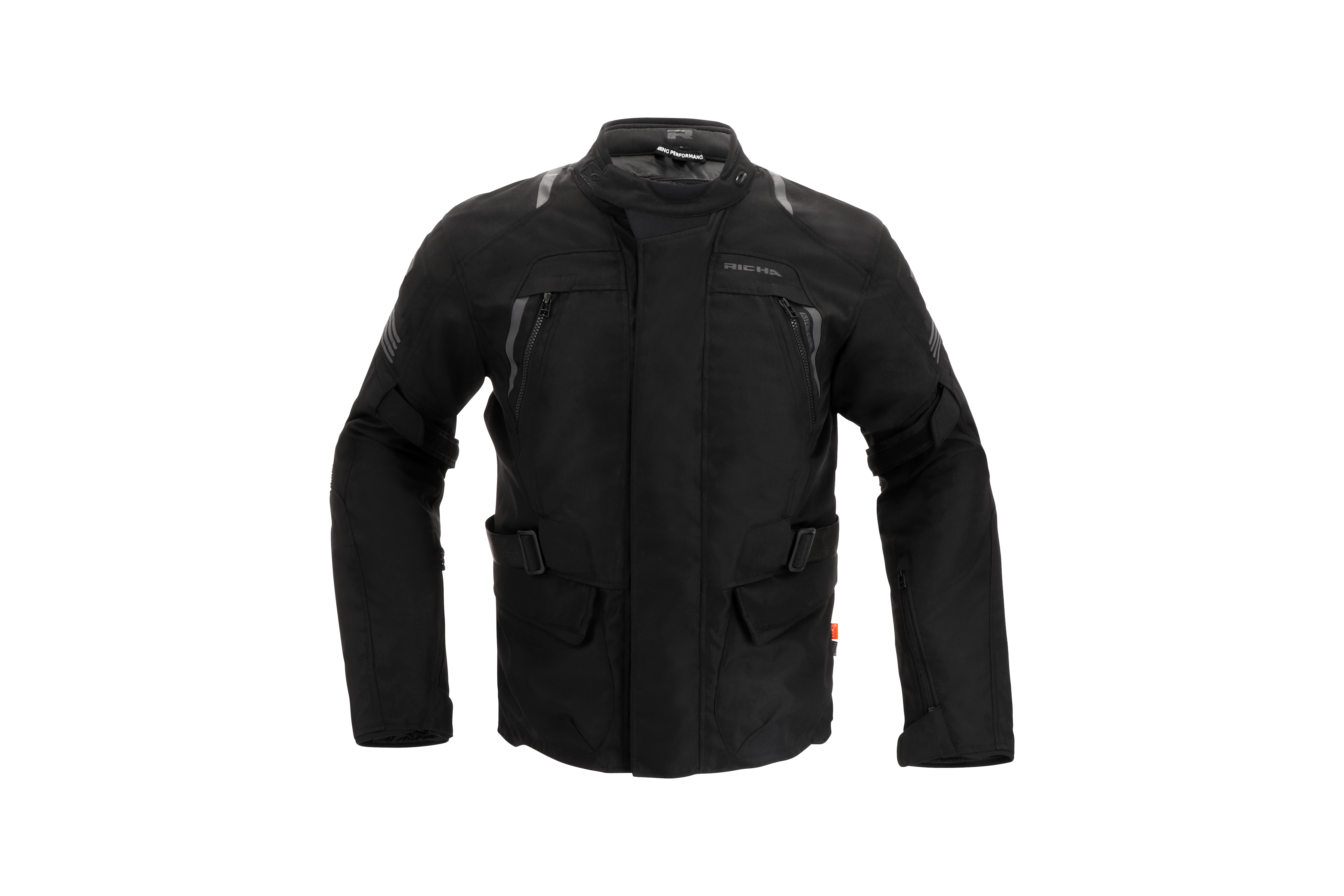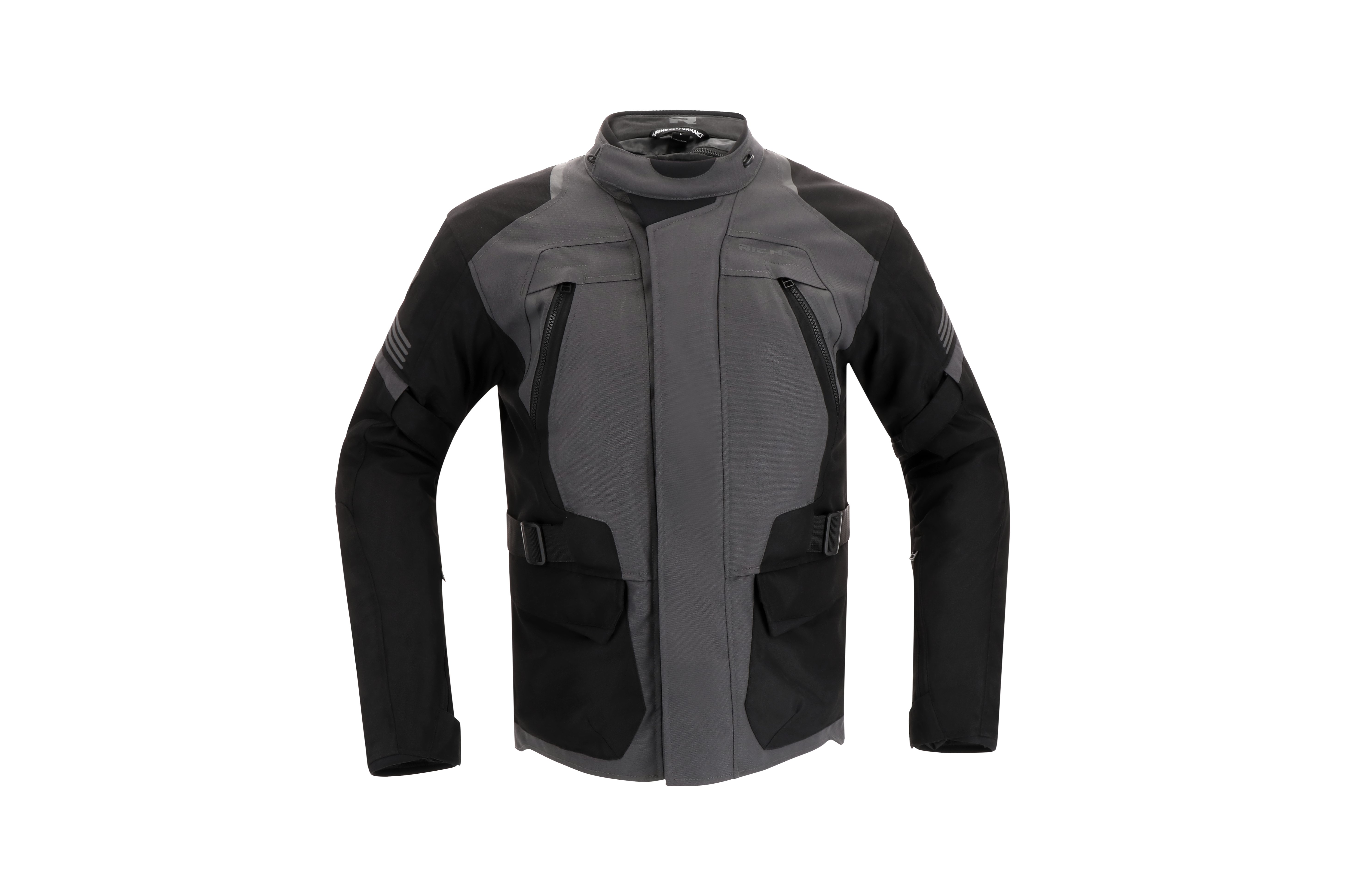 There are two outside pockets, one Napoleon pocket, three inside pockets and a short connection zipper to connect the jacket with any compatible Richa trousers.